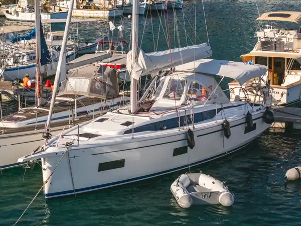 The Bavaria C38 cruiser is a modern and versatile sailing yacht, designed for both comfort and performance on the water. At 38 feet, it features Bavaria’s innovative V-shaped bow and chined hull, which provide excellent stability, speed, and interior volume. The yacht is equipped with a powerful sail plan, including a battened mainsail and a self-tacking jib, ensuring excellent sailing performance and ease of handling in various wind conditions. Its spacious cockpit, dual helm stations, and ergonomic layout make it a pleasure to sail, even with a small crew. Below deck, the C38 offers a bright, open interior with large hull windows and a three-cabin layout, providing ample space for families or groups. The fully equipped galley, cozy saloon, and high-quality finishes ensure a comfortable and luxurious living environment. Ideal for coastal cruising or longer passages, the Bavaria C38 is a reliable and stylish choice for sailors seeking space, functionality, and performance.